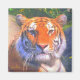 High-saturated close-up portrait of a Siberian Tiger, taking a dip in a water hole on a hot summer day.