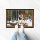 An Amur Tiger emerges from the forest and approaches a stream. Text reading, "WELCOME" also appears.