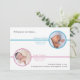 A neutral, white, background with focal point photo windows in blue and pink. Ideal as a twin siblings' birth announcement.