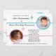 A neutral, white, background with focal point photo windows in blue and pink. The crosses can be dragged to any location, made larger or smaller or eliminated making this a perfect design for religious celebrations or for sibling or twin birthday party invitations.