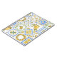Watercolor ornament square pattern, lemons Sicily, yellow and blue print. Summer pattern