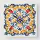 Sicilian Majolica Colourful Tile Pattern Square Wall Clock