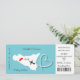 A fun but stylish wedding invitation in a boarding pass/ticket style for couples getting married abroad in Italian Island of Sicily which is shown in a white map silhouette on pale teal blue with sweet red love hearts, plane silhouette and swirling heart shape. The reverse has a space for your photo and contact/RSVP details