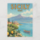 Sicily Italy Travel Art Vintage Postcard