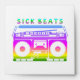 A design for people who enjoy their music. Maybe 80's music, maybe not, but anything with a good beat. This sick beats design has a stencil style, retro stereo. The stereo is 1980's style portable one, illustrated in bright colours.