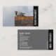 A horizontal business card template with a black side banded layout. Attractive image on the front. Company name in rotated text on the front and back with all other contact details on the back. The photo or image on the front can also be changed. The design also allows scope for additional customisation.