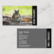 A horizontal business card template with a black side banded layout. Attractive image on the front. Company name in rotated text on the front and back with all other contact details on the back. The photo or image on the front can also be changed. The design also allows scope for additional customisation.