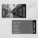 A horizontal business card template with a black side banded layout. Attractive image on the front. Company name in rotated text on the front and back with all other contact details on the back. The photo or image on the front can also be changed. The design also allows scope for additional customisation.