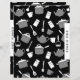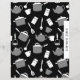 Custom double sided recipe divider page for a black, white and grey kitchen utensil cookbook recipe binder kit. Features a fun and whimsical kitchen cookware and utensil pattern in a black, white and grey colour palette with customisable text presented on a coordinating banner.