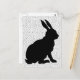 This postcard is white with black polka dots and the side profile of a black sitting bunny rabbit.
