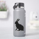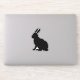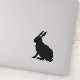This vinyl sticker is the side profile of a sitting black silhouette bunny rabbit with tall ears.