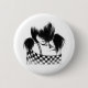 Button featuring a girl with side-swept bangs wearing a chequered shirt.