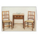 English School's Side table and pair of spindle back chairs, Lancashire (oak) located at a Private Collection. The Side table and pair of spindle back chairs, Lancashire (oak) was created around the 18th century.