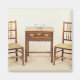English School's Side table and pair of spindle back chairs, Lancashire (oak) located at a Private Collection. The Side table and pair of spindle back chairs, Lancashire (oak) was created around the 18th century.