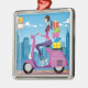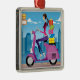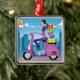 Side view of woman with gifts on scooter metal ornament