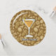 A glass of Sidecar cocktail with a stripe of lemon rind on beige background.