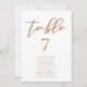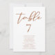 This sienna brown wedding table number card with numbers is a warm regal colour for a bride or groom looking for a blend between soft and masculine. The custom tan minimalist script features simple cursive typography along with a chic, modern serif font. This soft brown is perfect for a fall afternoon event.