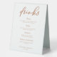 This sienna brown wedding bar menu table tent sign is a warm regal colour for your drinks list of wine, beer, and spirits. The lovely tan minimalist script features simple cursive typography along with a chic, modern serif font. This soft brown is perfect for a fall afternoon reception.