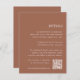 An all-purpose enclosure card for your wedding invitations, this petite Details card provides three custom text fields for your wedding details, website, and a QR code for RSVPs or additional information. A simple typography based design with a minimalist feel, featuring classic white lettering on an earthy burnt sienna rust background.