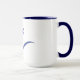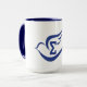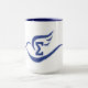 15oz. white mug with blue trim and handle with blue dove with Greek letter Sigma inside.