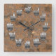An American Sign Language clock, with faux metallic hands on a faux rusty iron backing.