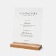 Elevate your wedding bar presentation with this classic black and white signature drinks menu printed on clear acrylic. Featuring elegant script and refined calligraphy, this simple yet timeless wedding tabletop sign beautifully displays your custom cocktails in a clean, sophisticated style. The transparent acrylic design adds a modern touch while maintaining classic elegance, and the optional wood stand provides a warm, polished finish for your reception or cocktail hour décor.