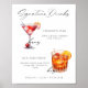 Elegant & modern typography black and white signature drinks poster with watercolor cocktails. *To add different cocktails, such as martini, whiskey sour, aperol spritz etc., click "edit using design tool" button to change the drinks to suit your needs. By clicking the "eyeball" next to each drink in the layers section it will add them to the poster.
