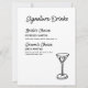 Set the tone for your celebration with this stylish Signature Drinks menu featuring a charming martini glass and heart illustration. Perfect for weddings, this customisable sign allows you to showcase your personalised drink choices, like an Espresso Martin, Dirty Martini, or anything else. The minimalist black-and-white design adds a modern, elegant touch to any wedding decor, whether you're hosting a chic cocktail reception or a more casual gathering. Easily adjust the text to fit your signature drinks for a seamless, sophisticated look that your guests will love.