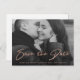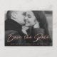 This edgy and modern design says "save the date" in a trendy, faux rose gold look script over your personal photo. Personalise both the front and the back with your wedding save the date information.