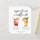 This chic signature mocktails menu sheet features simple black tyopgraphy above 2 cute drinks and their ingredients for your wedding bar. A Shirley Temple and non-alcoholic virgin Piña Colada add a cool flair to your bar menu. Complete with the couple's names and date for their reception.