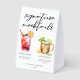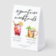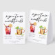 This chic signature mocktails paper table tent sign features simple black tyopgraphy above 2 cute drinks and their ingredients for your wedding bar. A Shirley Temple and non-alcoholic Moscow mule add a cool flair to your bar menu. Complete with the couple's names and date for their reception.