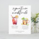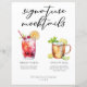 This chic signature mocktails list features simple black tyopgraphy above 2 cute drinks and their ingredients for your wedding bar. A Shirley Temple and non-alcoholic Moscow mule add a cool flair to your bar menu. Complete with the couple's names and date for their reception.
