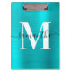 Signature Monogram Turquoise Blue Shimmer Foil Clipboard