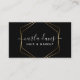 Elegant black and gold geometric hand lettered style calligraphy script professional business card. Perfect for makeup artists, hair stylists, cosmetologists, and more!