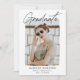 Trendy graduation party invites featuring the graduate's photo on the front framed by a white rough edge border. "Graduate" is displayed in a black signature script with the graduate's name, school name, and graduation year shown below. The modern graduation party invite reverses to display your graduation party details with a unique black and white stamped line pattern background. This photo graduation party invite is perfect for both high school and college graduation parties.