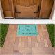 Signature Script Personalised Teal Modern Family Name Doormat. This elegant design is the perfect housewarming gift for newlyweds or new homeowners. Trendy hand lettered script is paired with a serif font for a rustic look.