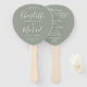 These fans were exactly as pictured. The quality is great. Perfect favor for a wedding!...I will make assembly a little easier by using a hot glue gun and finish them off with a ribbon. Beautifully printed. Crisp and clear text.