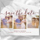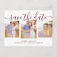 Signature Script Three Photos Maroon Save The Date Announcement Postcard