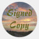 A sticker label to indicate a book, magazine, article, photo, etc., has an author's / illustrator's/ artist's/ photographer's autograph attached.