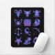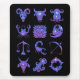 A pretty pattern within the signs of the zodiac featuring a blue starry night sky.