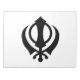 This design features the khanda (in Punjabi, ਖੰਡਾ, khaṇḍā), which is a symbol of Sikhism, a traditional religion of India that now has followers around the world. The symbol reached its current form around the first decade of the 20th century.