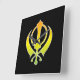 The design features the Sikh Khanda - perfect gift for Sikhs to put at home or at the office. There are three different items used in a Khanda, which also have a symbolic meaning: 1. A double-edged sword called a Khanda which is in the centre 2. A Chakkar which is circular 3. Two single-edged swords, or kirpans, are crossed at the bottom and sit on either side of the Khanda and Chakkar. In the symbol the sword to the left represents truth, and the sword to the right represents the willingness to fight for what is right- dharma (religion). The circle in the middle denotes the one God, never beginning and never ending. The Khanda represents knowledge of God, the Chakkar represents the eternal nature of God and oneness of humanity, the two swords represent Miri (political sovereignty) and Piri (spiritual sovereignty)