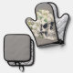 Silent Bloom: Skull & White Lilies Oven Mitt & Pot Holder Set