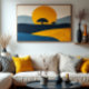 “Silent Dawn” evokes the serene beauty of a sunset. Vibrant colours and geometric shapes create a work that transmits peace and tranquillity to your home. A unique piece for those seeking harmony and comfort.