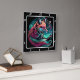 Perched high above the towering mountains, this stunning fox display captures the essence of the wilderness. Set against a deep black background, the vibrant neon-inspired hues illuminate the fox as it watches over the vast, untamed landscape.