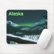 Features a night scene in the far north. Night has fallen and there is a hint of the Northern Lights beyond the mountains on the horizon. Moonlight reflects off the snow-covered landscape. An owl sits in a dead spruce tree seeking voles. Text reading "Alaska" also appears in glowing green and white.