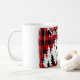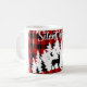 Christmas mug with red and black plaid, deer, snow. ‘Silent Night’