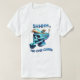 A casual white t-shirt showcases a bold and humourous graphic of a blue-hued grim reaper whispering SHHH... NO ONE CARES featuring a small character perched on its shoulder. The striking design emits a cheeky vibe, blending playful attitude with the iconic symbol of silence.