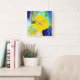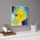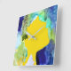 Colorful abstract art original fine art of lady silhouette with colorful watercolor designs in blue and gold.
