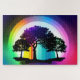 Silhouette Black Trees Encircled by Rainbow Hues Jigsaw Puzzle